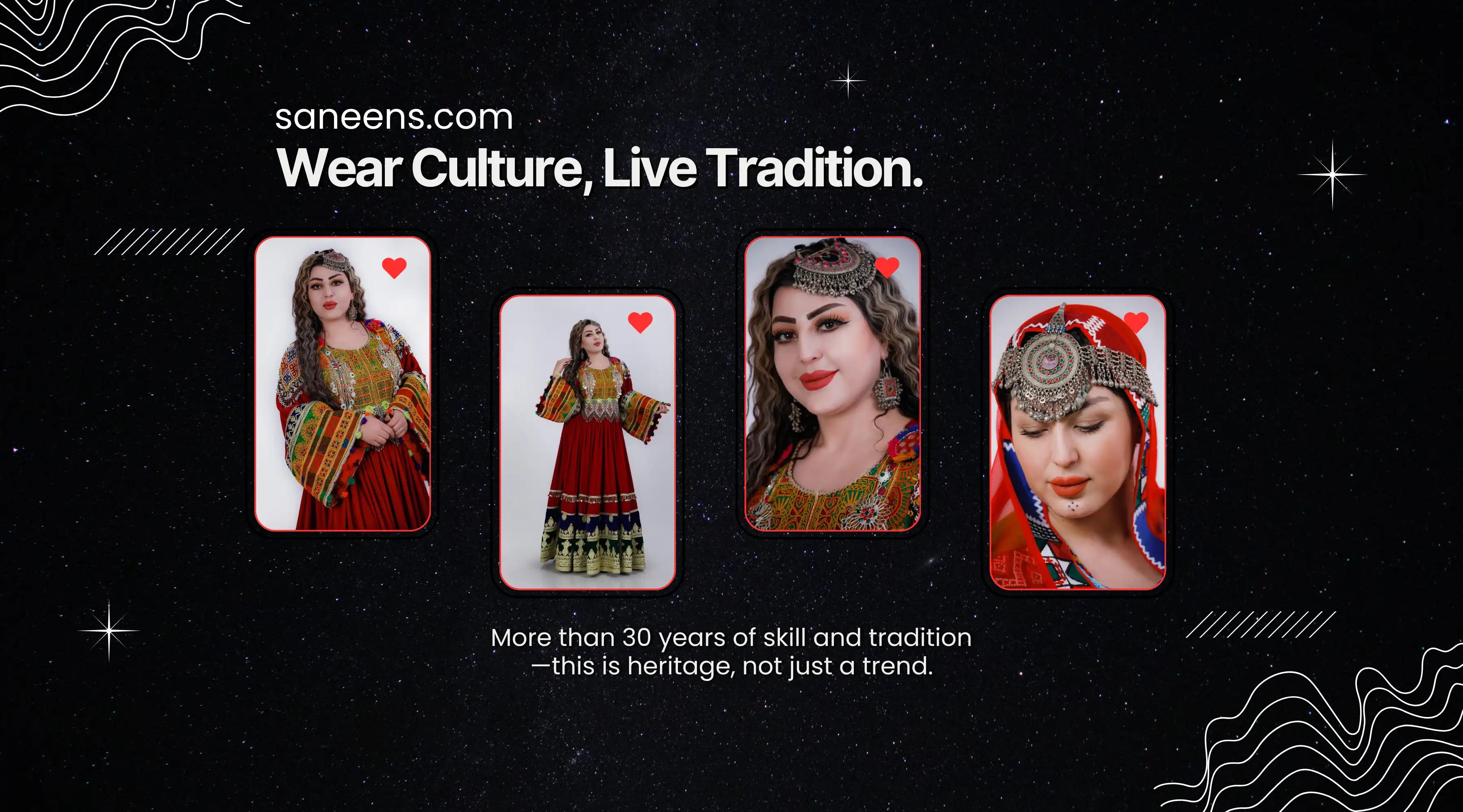 Welcome to Saneens—your home for authentic Afghan dresses and rugs. Each piece carries the rich heritage and craftsmanship of Afghanistan.