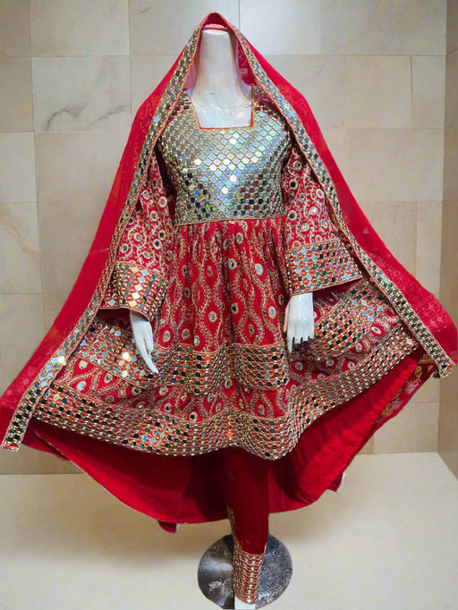 Original price $245.00 - Original price $245.00Original price$245.00$245.00 - $245.00Current price $245.00| /Pashtun Arosi Libas – Red Bridal Dress with Heavy Embroidery & Mirror Work Celebrate the grandeur of Pashtun bridal tradition with this stunnin...