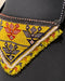 Design: Yellow fabric base with multicolored tribal embroidery and hand-beaded edges
