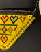 Design: Yellow fabric base with multicolored tribal embroidery and hand-beaded edges