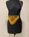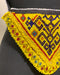 • Design: Yellow fabric base with multicolored tribal embroidery and hand-beaded edges