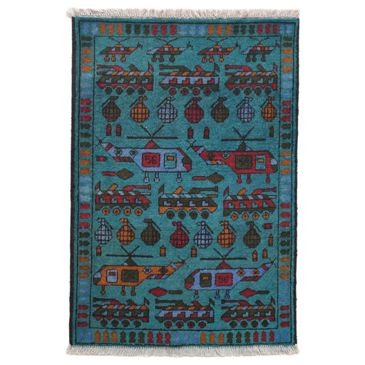 Discover the unique artistry of Afghan War Rugs (90x60 cm), handwoven by skilled artisans who transform history and storytelling into textile masterpieces. Each rug features symbolic patterns and detailed designs inspired by Afghanistan’s cultural heritage, making it more than just a floor covering—it is a piece of living history.