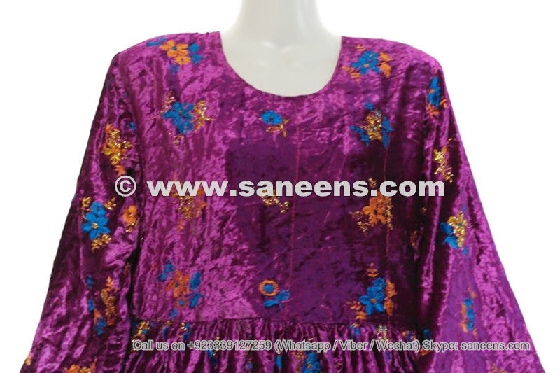 Design: Authentic Pashtun tribal embroidery in vibrant violet and purple hues